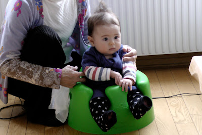 I was away so not much for me to report. Meg said that they had a good day and went out for a walk and stuff. Pics 1-4: 1. Liam hanging out on his blanket. 2. Sitting in his chair. 3. Having a sleep. 4. Meg's Dad holding Liam.